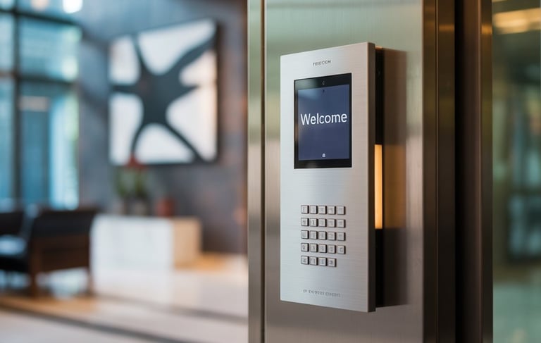 IP Intercom: يعمل عبر الشبكة، يدعم الدمج مع Access Control وCCTV Systems، ويمكن ربطه بالهاتف المحمول.