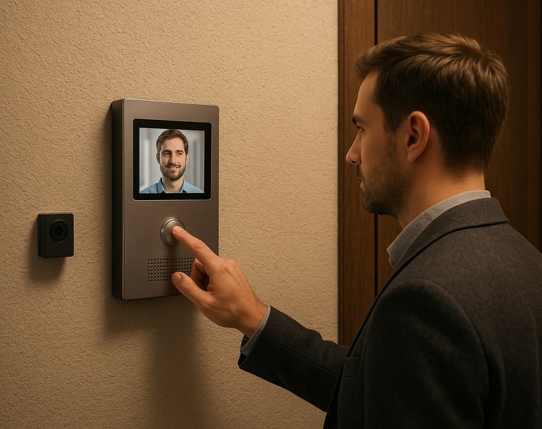 تواصل مرئي وصوتي ذكي يضمن لك التحكم الكامل في المداخل وربط سلس مع باقي الأنظمة الأمنية… اضغط لتعرف كيف يعمل الإنتركم الحديث