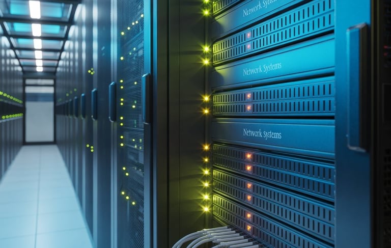 في مجال الشبكات، نقوم بتنفيذ بنية تحتية متكاملة باستخدام كابلات حديثة من نوع Cat6 وCat7، أو ألياف ضوئية عالية الاعتمادية، مع تصميم Structured Cabling System يضمن سرعة نقل البيانات واستقرار الخدمة حتى في بيئات العمل ذات الضغط العالي.